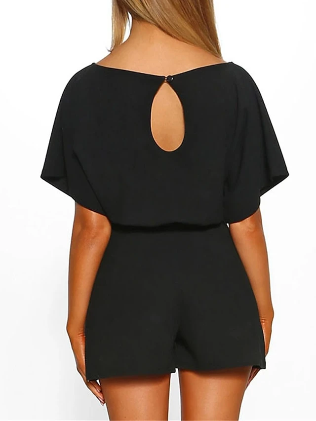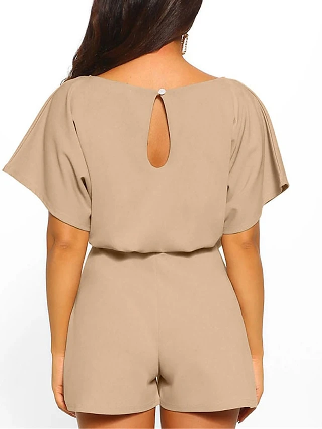 Black Jumpsuit For Women Romper Lace Up Print Solid Color Crew Neck Casual Daily Vacation Regular Fit Short Sleeve Black Wine Blue S M L Spring