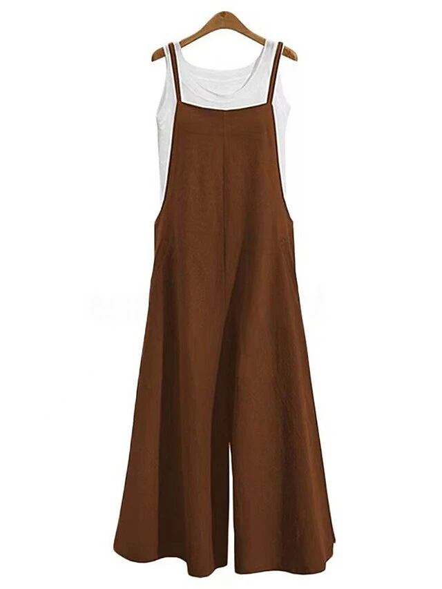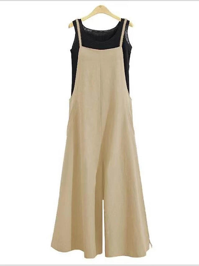 One Piece Jumpsuits For Women Overall Bib Pocket Solid Color U Neck Holiday Home Street Regular Fit Strap Army Green Navy Blue Brown S M L Summer