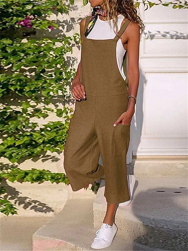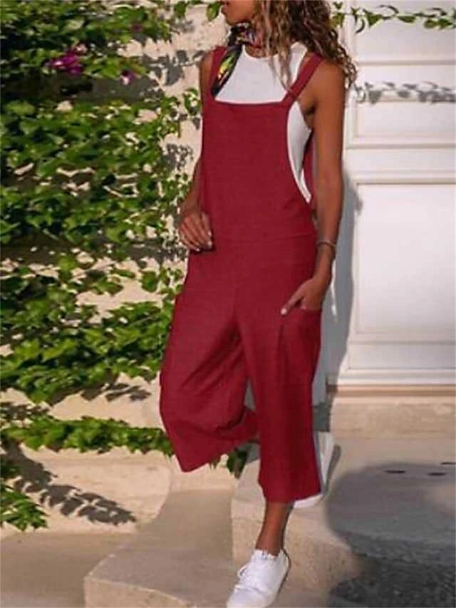 One Piece Jumpsuits For Women Overall Bib Pocket Solid Color U Neck Streetwear Street Daily Regular Fit Strap Black Wine Army Green S M L Summer Fall