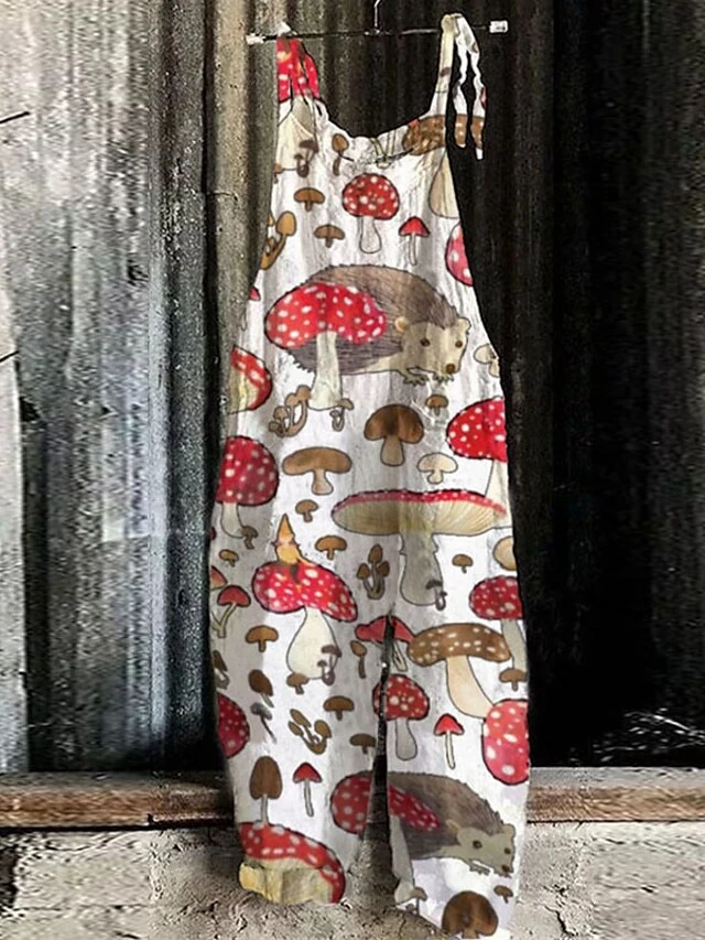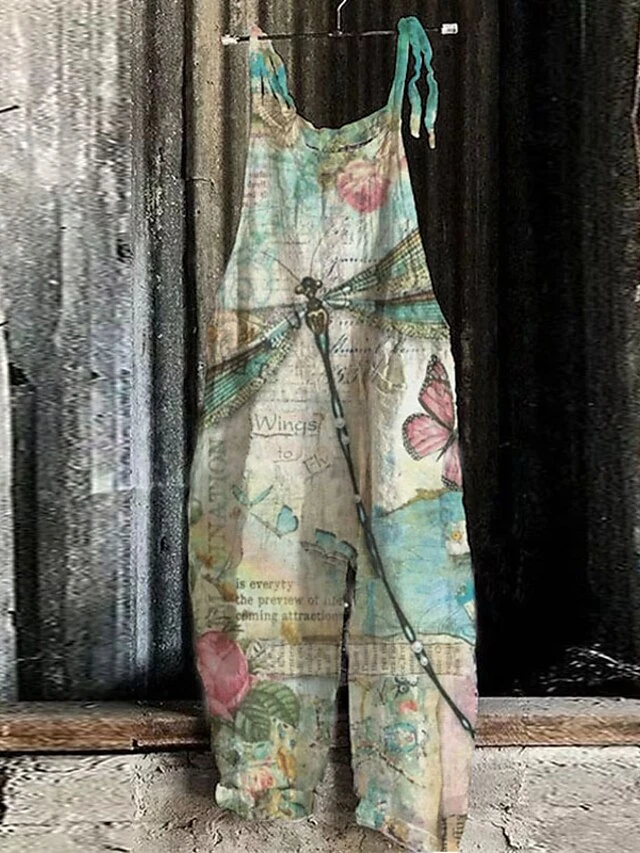 One Piece Jumpsuits For Women Utility Print Animal Square Neck Casual Daily Holiday Regular Fit Sleeveless Green Pink Yellow S M L Spring Fall