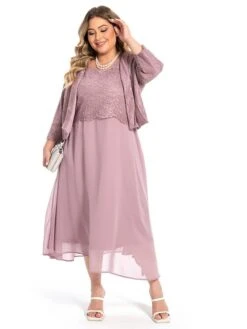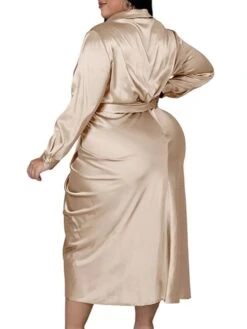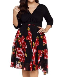 Women‘s Plus Size Curve Holiday Dress Solid Color Crew Neck Half Sleeve Spring Fall Basic Dress