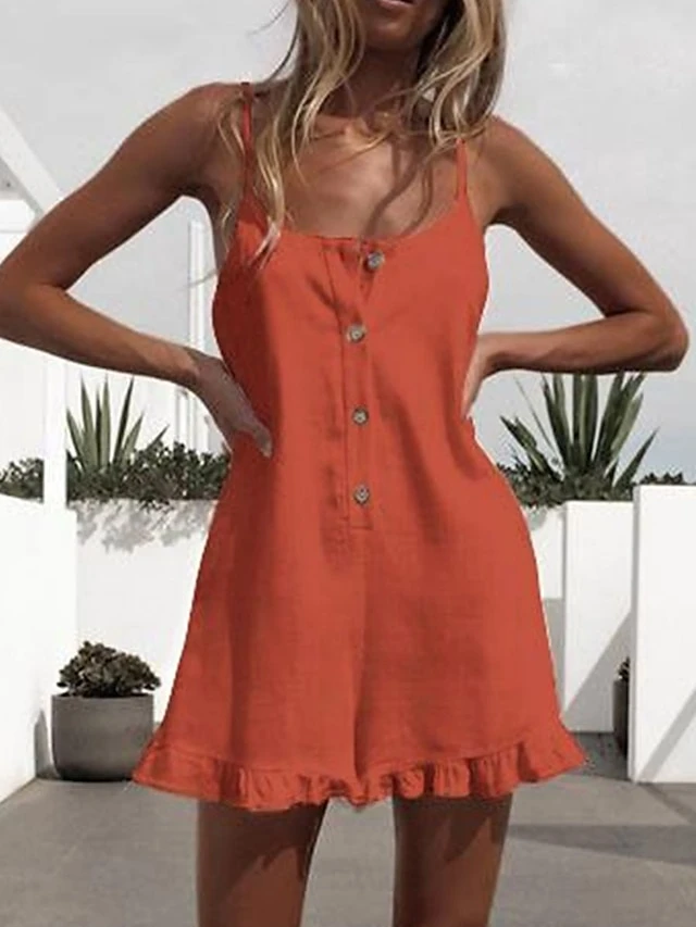 White Jumpsuits For Women Romper Ruffle Button Solid Color Crew Neck Streetwear Street Daily Regular Fit Spaghetti Strap Black Orange S M L Summer