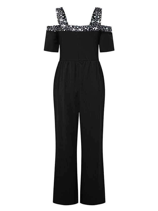 Women Party Jumpsuit Cut Out Solid Color Cold Shoulder Business Wedding Party Straight Regular Fit Short Sleeve Black S M L Spring Summer