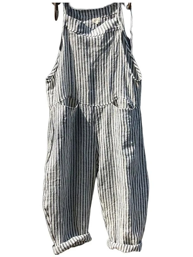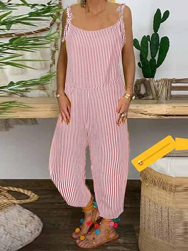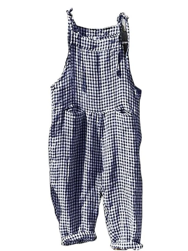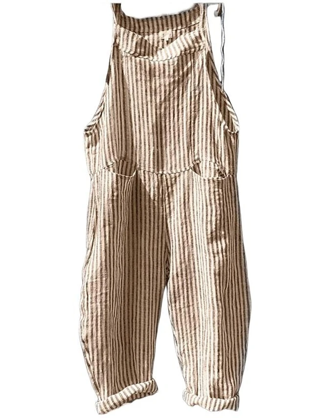 Women‘s Backpack Jumpsuit Pink Fall WinterFashion Street Backpack Striped Plaid Pattern One-Piece Wide Leg Pants
