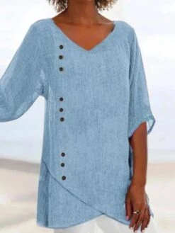 Women’s Shirt Blouse Black Pink Blue Plain Asymmetric Half Sleeve Casual Basic V Neck Regular Fit