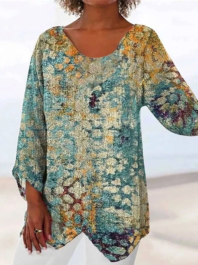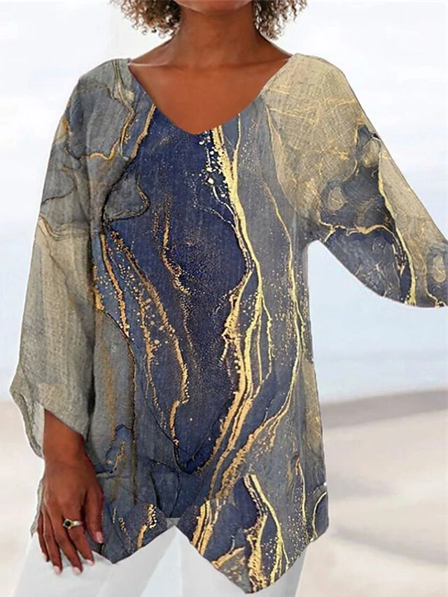 Women’s Blouse Cotton Yellow Blue Purple Floral Striped Geometry Print Long Sleeve Daily Going Out Weekend Vintage Basic V Neck Regular Fit Spring Fall