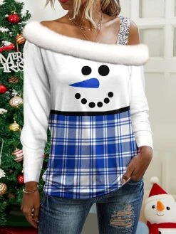 Women’s Blouse Print Stripes And Plaid Lace V Neck Regular Spring &Fall White