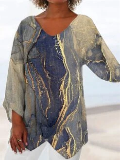 Women’s Blouse Shirt Blue Yellow Orange Geometric Long Sleeve Daily Shirt Collar Loose Fit S