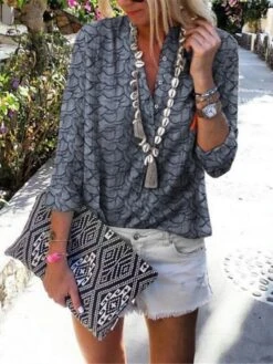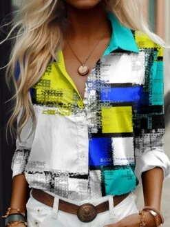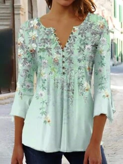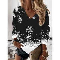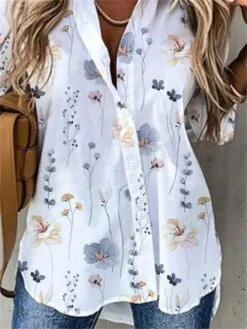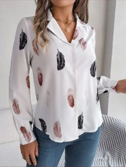 Women’s Shirt Blouse White Plain Lace Long Sleeve Casual Fashion V Neck Regular Fit Spring &Fall