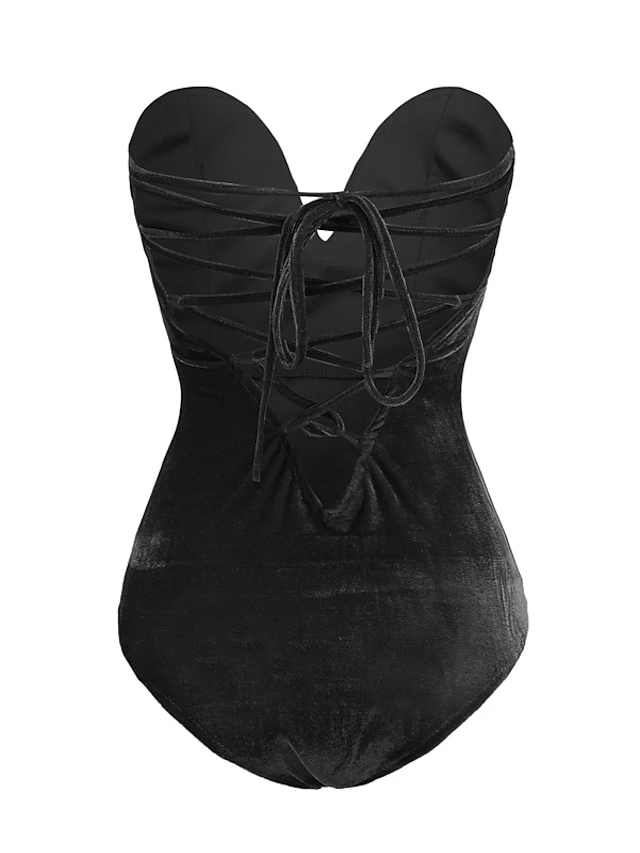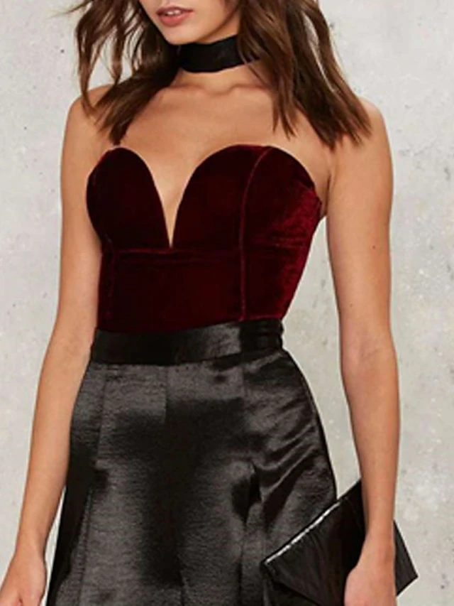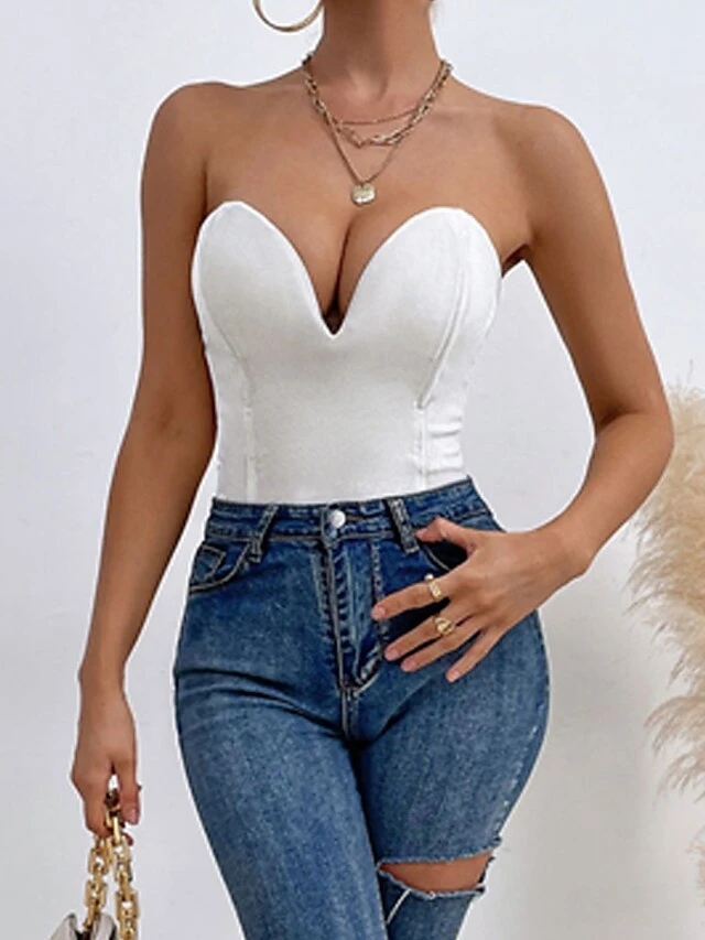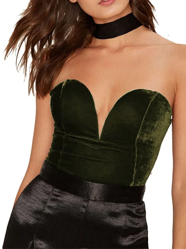 Women’s Bodysuit Backless Solid Color Bandeau Elegant Party Party & Evening Regular Fit Sleeveless Green White Black XS S M Spring