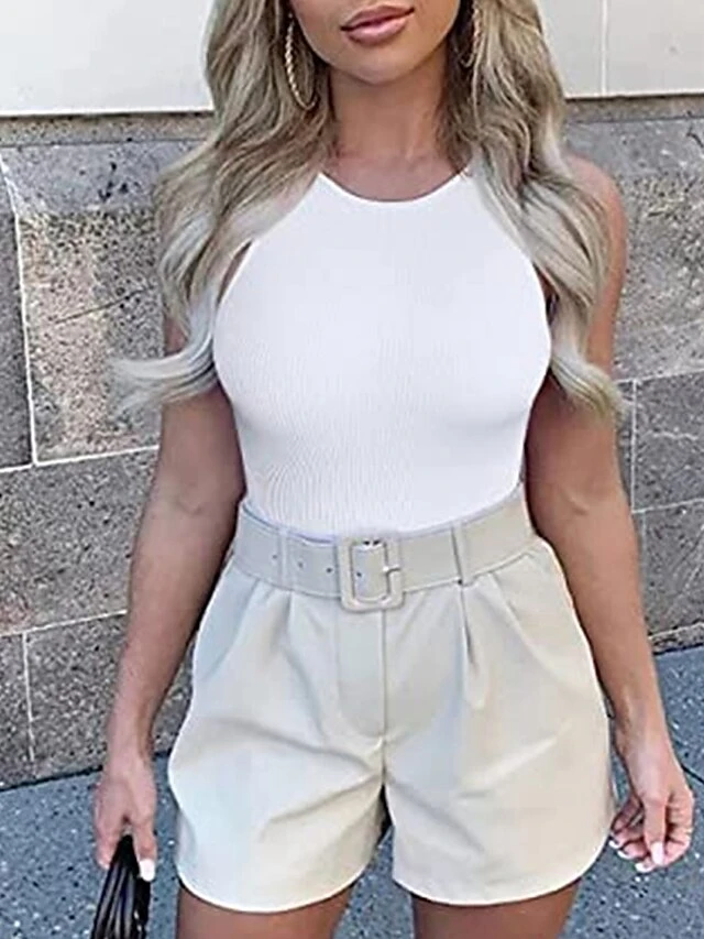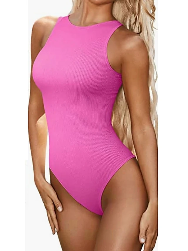 Women’s Bodysuit High Waist Solid Color Crew Neck Streetwear Street Daily Regular Fit Sleeveless Black White Pink S M L Summer