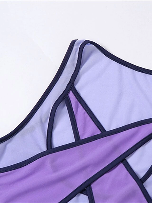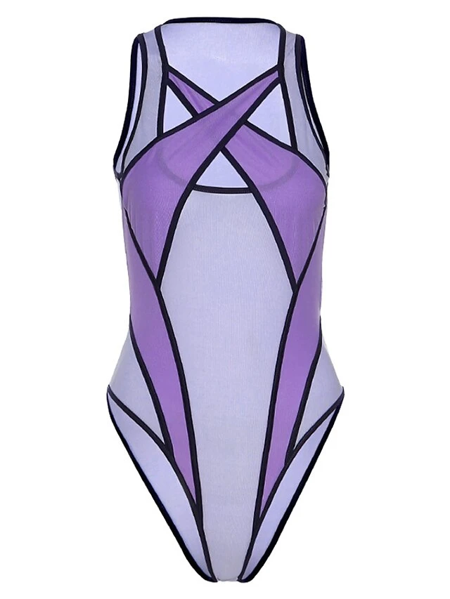Women’s Bodysuit Mesh Cut Out Color Block Streetwear Home Holiday Regular Fit Sleeveless Purple S M L Spring