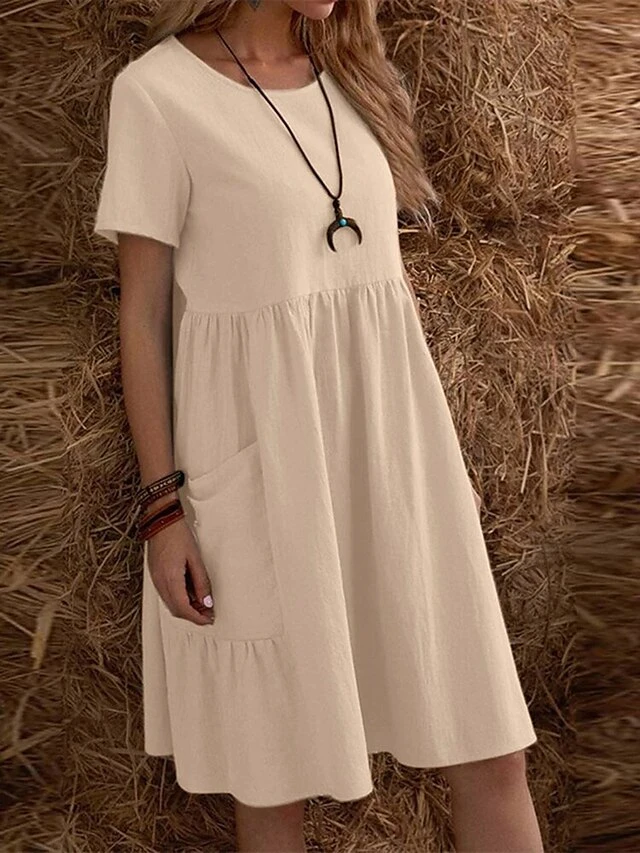 Women’s Casual Dress Cotton Linen Dress Maxi Long Dress Linen / Cotton Blend Fashion Street Style Daily Date Weekend Crew Neck Ruffle Pocket Short Sleeve Summer 2023 Regular Fit Claret Black Yellow