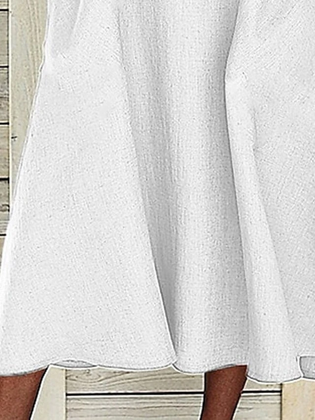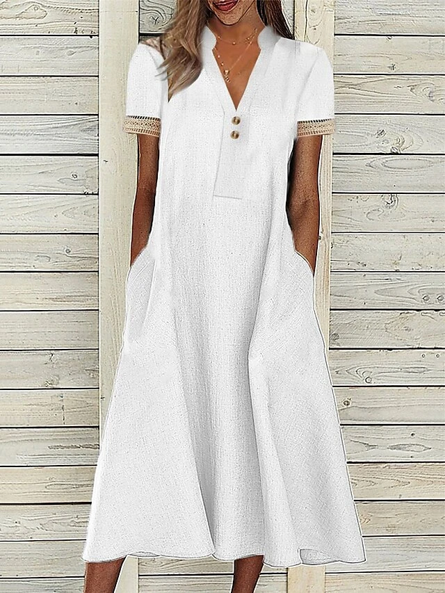 Women’s Casual Dress Cotton Linen Dress White Dress Maxi Long Dress Cotton Blend Basic Modern Outdoor Daily Split Neck Patchwork Button Short Sleeve Summer Spring 2023 Regular Fit White Plain S M L