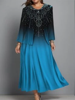 Women’s Casual Dress Two Piece Dress Shift Dress Long Dress Maxi Dress Grey Long Sleeve Pure Color Fake Two Piece Summer Spring Crew Neck Fashion Vacation 2023 S M L XL 2XL