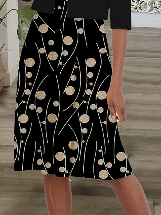 Women’s Dress Set Two Piece Dress Church Dress Midi Dress Black Half Sleeve Polka Dot Ruched Summer Spring Crew Neck Casual 2023 S M L XL XXL 3XL