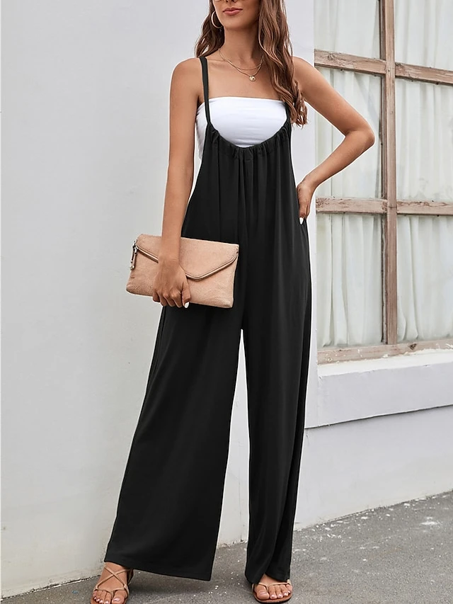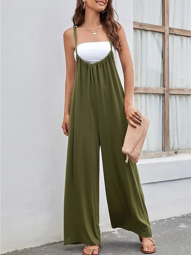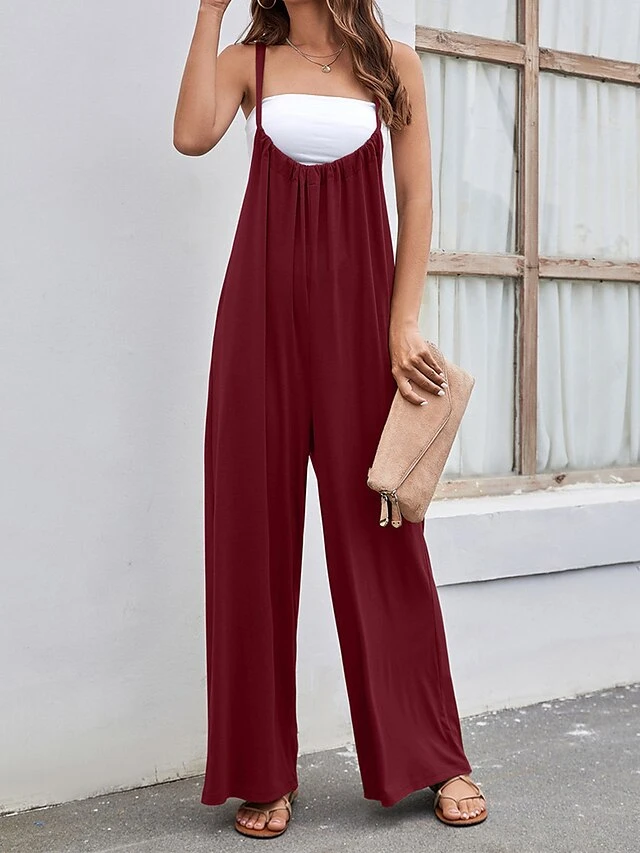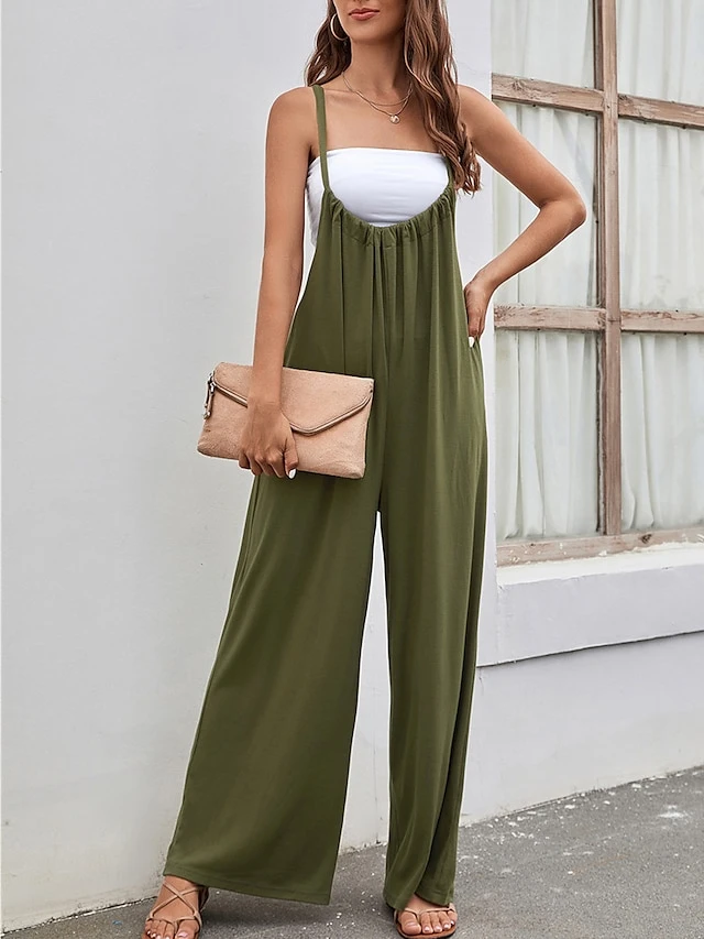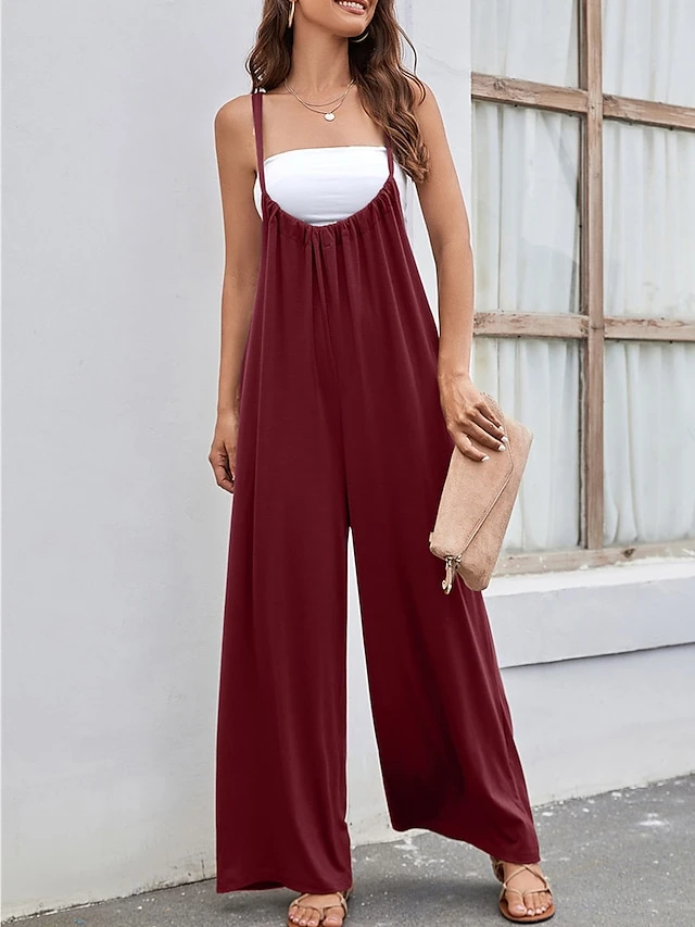 Women’s Jumpsuit Backless High Waist Solid Color U Neck Streetwear Street Daily Regular Fit Sleeveless Black Wine Army Green S M L Summer