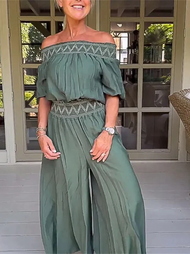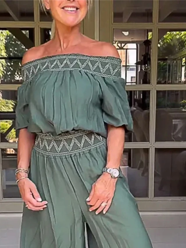 Women’s Jumpsuit Backless Patchwork Color Block V Neck Streetwear Daily Holiday Regular Fit Half Sleeve Green S M L Fall