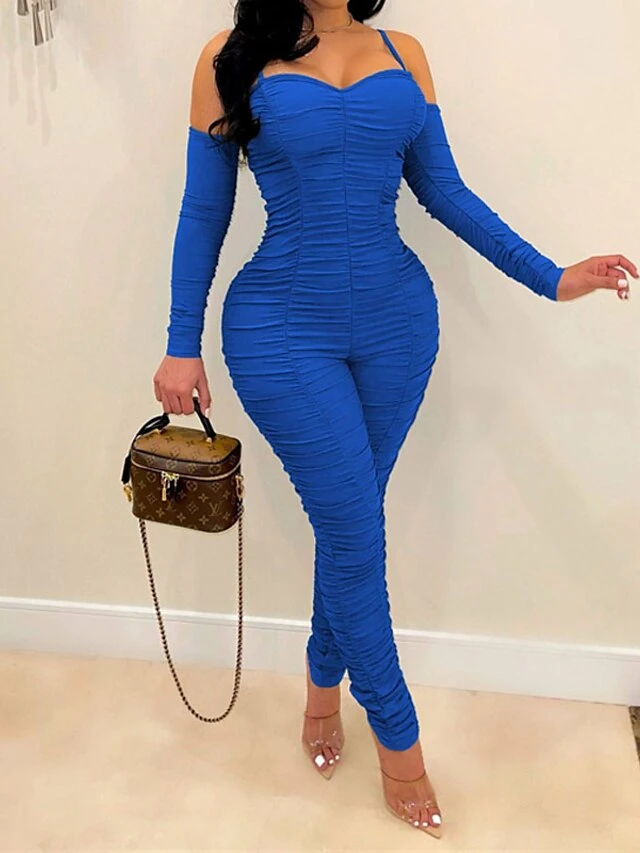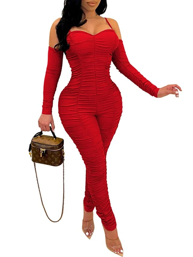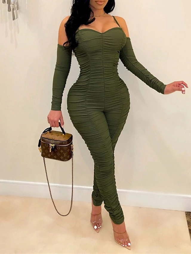 Women’s Jumpsuit Backless Solid Color Square Neck Active Home Street Regular Fit Long Sleeve Green Blue Red S M L Spring