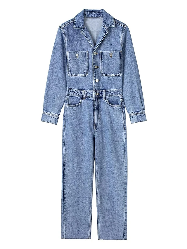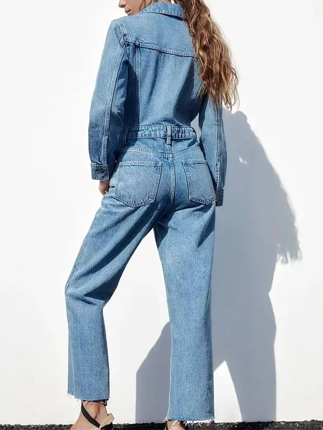Women’s Jumpsuit Button Pocket Solid Color Shirt Collar Streetwear Street Daily Regular Fit Long Sleeve Blue XS S M Fall