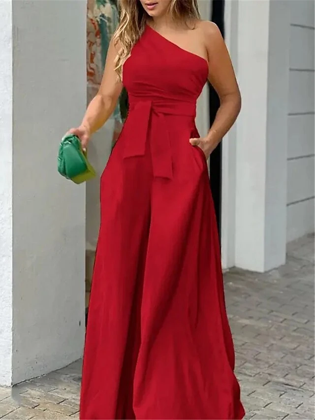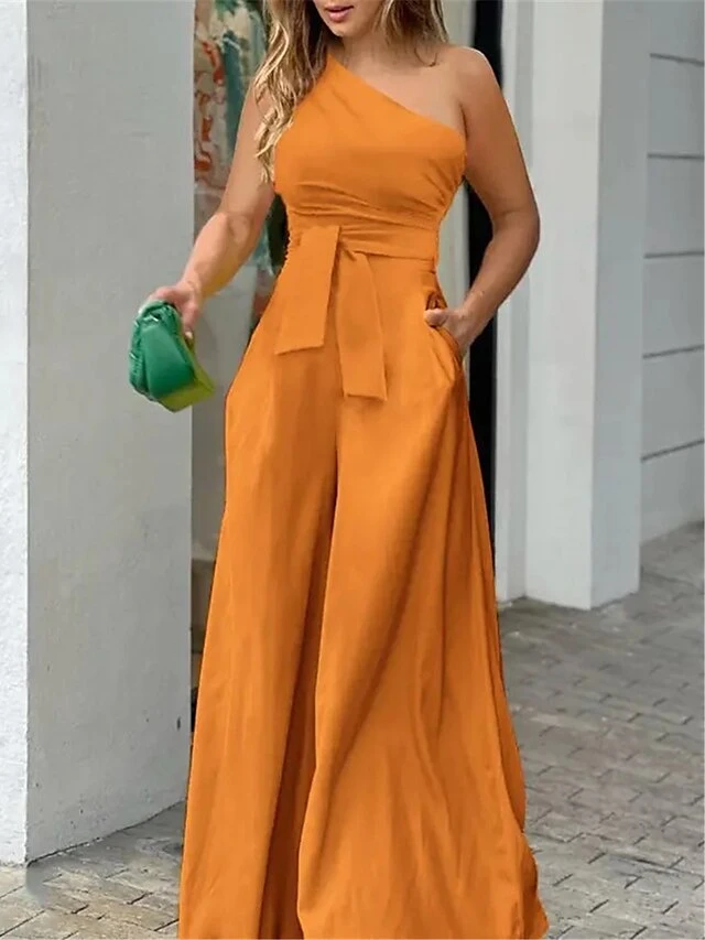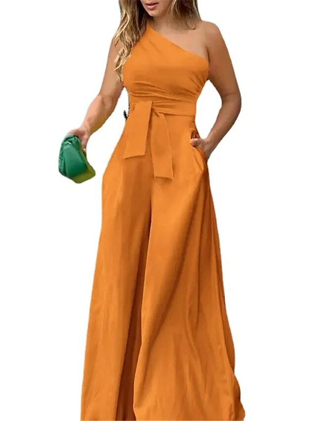 Women’s Jumpsuit For Special Occasions Pocket High Waist Solid Color One Shoulder Streetwear Party Office Regular Fit Sleeveless Black Yellow Red S M L Summer