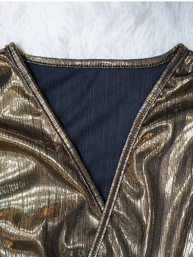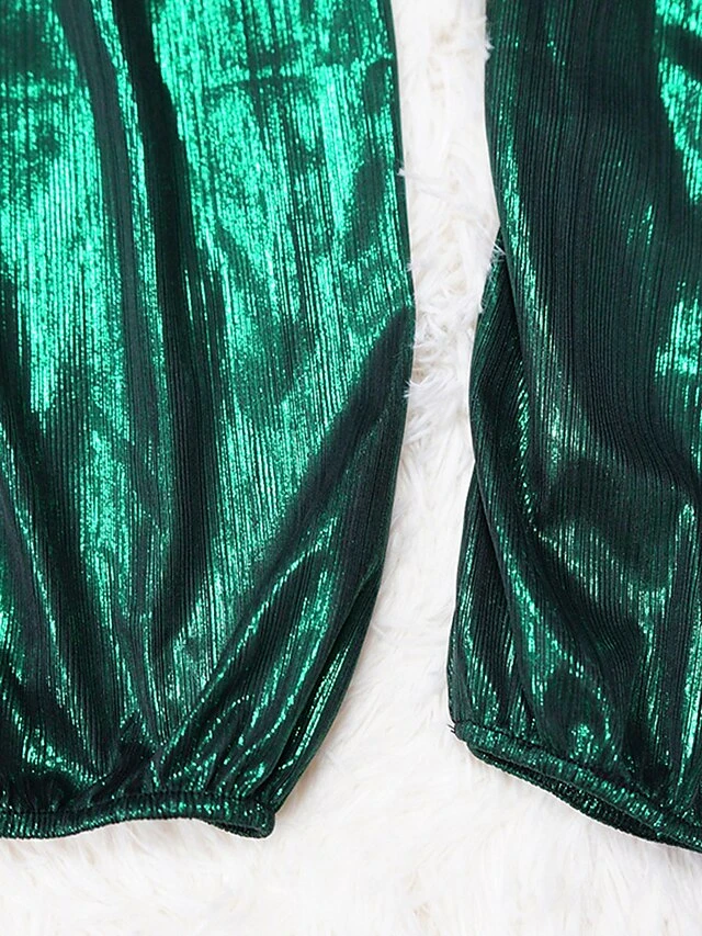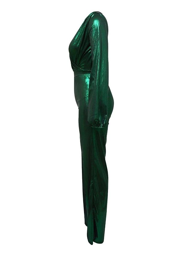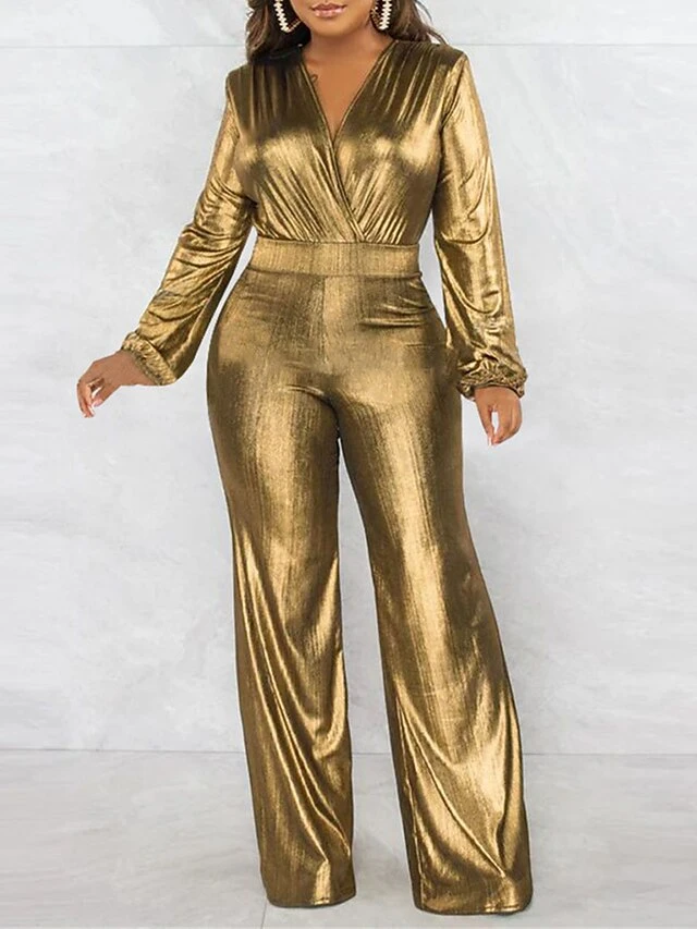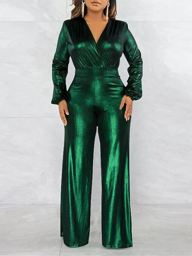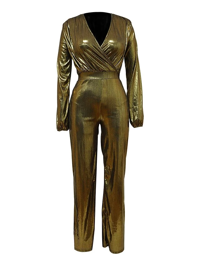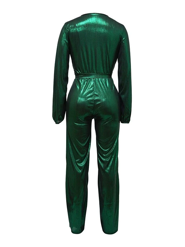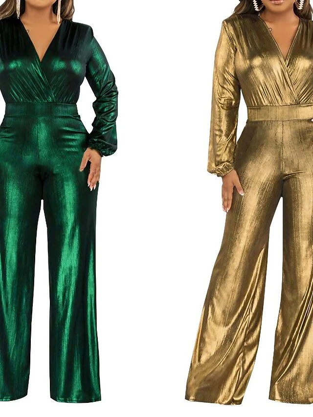 Women’s Jumpsuit High Christmas Waist Solid Color V Neck Streetwear Party Xmas Street Regular Fit Long Sleeve Gold Green S M L Fall