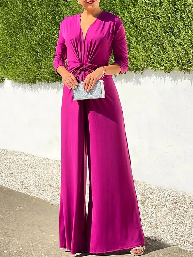 Women’s Jumpsuit High Waist Solid Color V Neck Streetwear Street Daily Regular Fit Long Sleeve Light Green Red Navy Blue S M L Spring