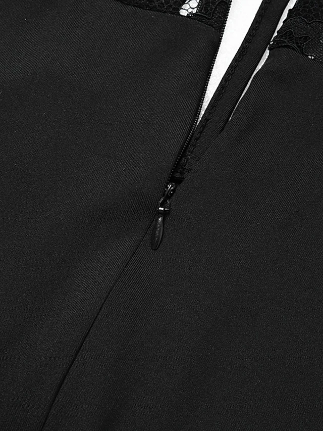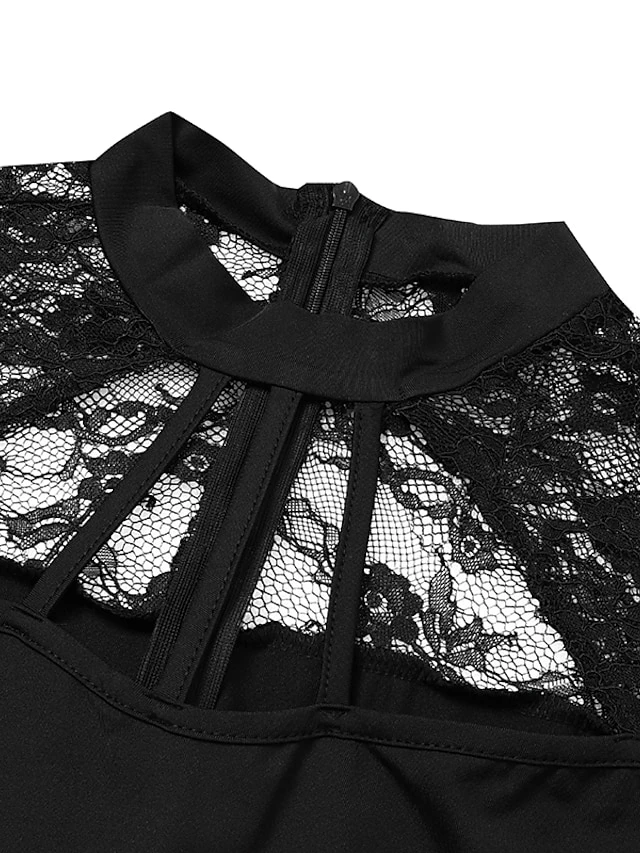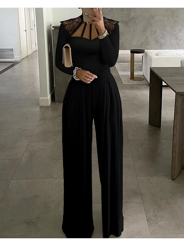 Women’s Jumpsuit Lace Solid Color Crew Neck Business Wedding Party Straight Regular Fit Long Sleeve Bishop Sleeve Black S M L All Seasons