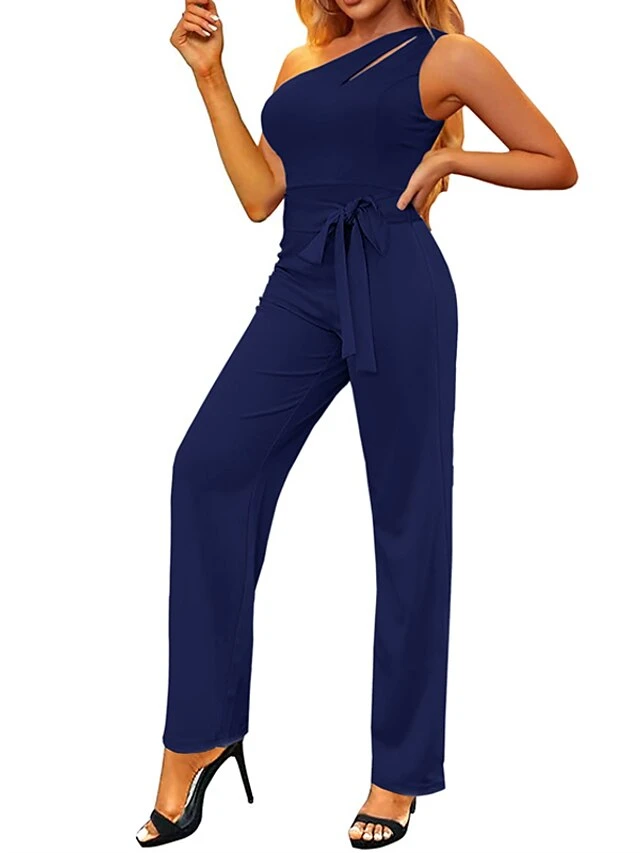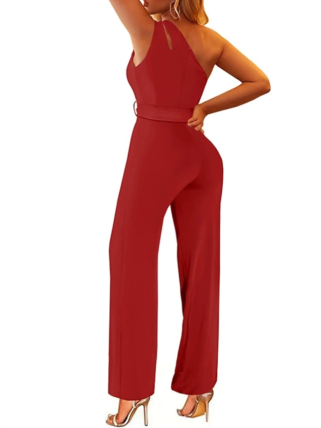 Women’s Jumpsuit Lace Up Backless Solid Color One Shoulder Streetwear Street Vacation Regular Fit Sleeveless Black Wine Red S M L Spring