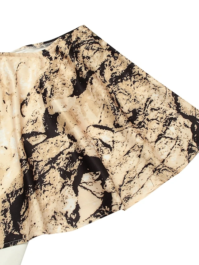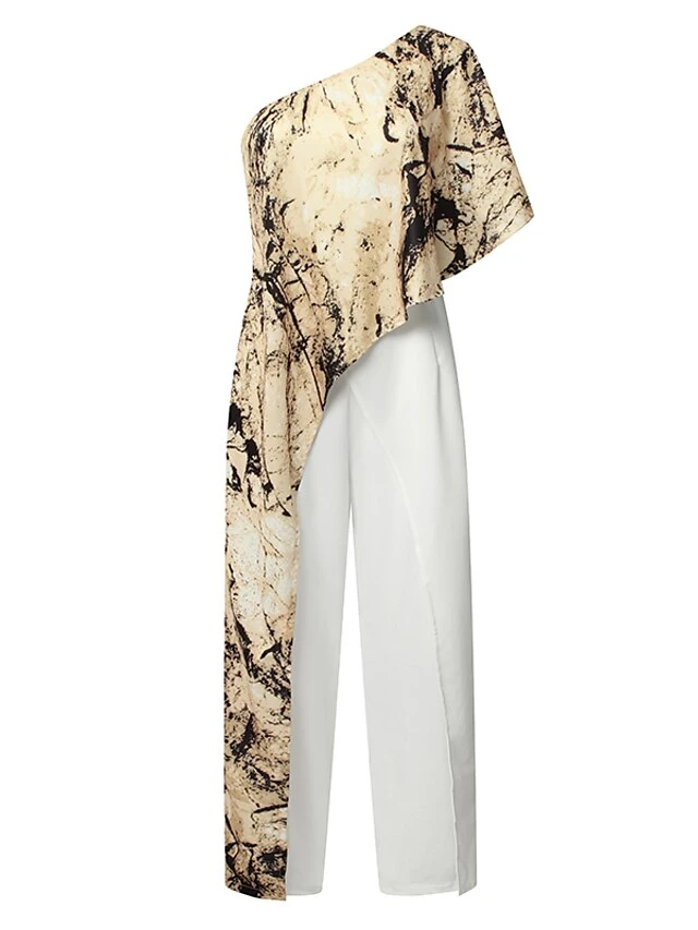 Women’s Jumpsuit Patchwork Print Color Block One Shoulder Elegant Party Prom Straight Regular Fit Short Sleeve Brown S M L Spring