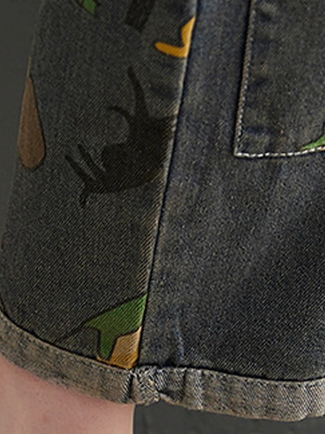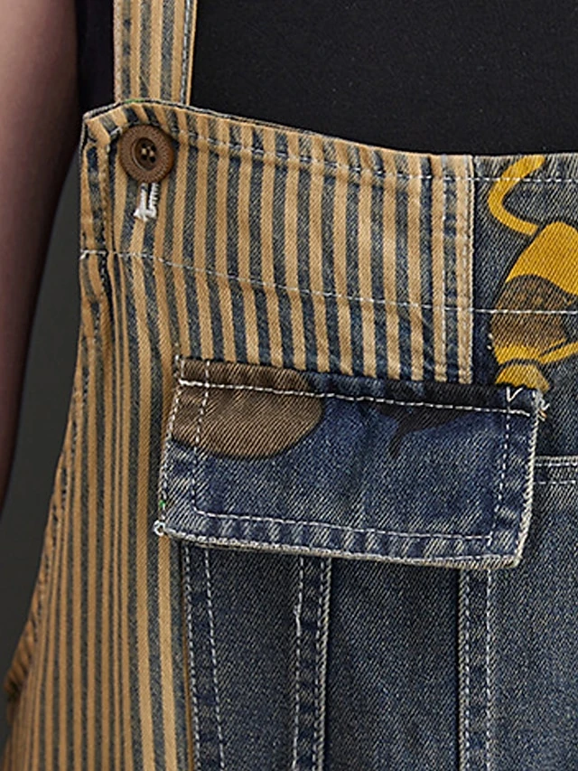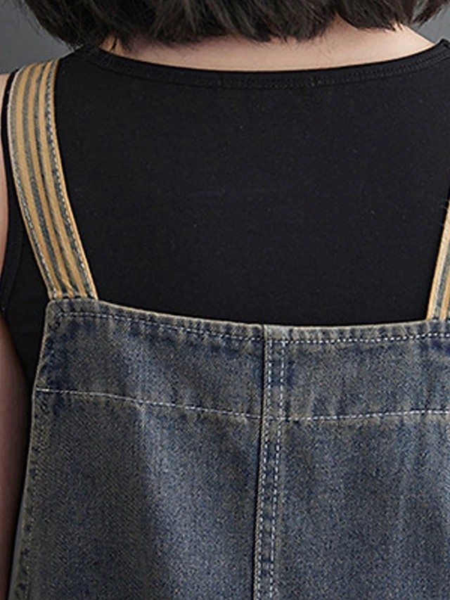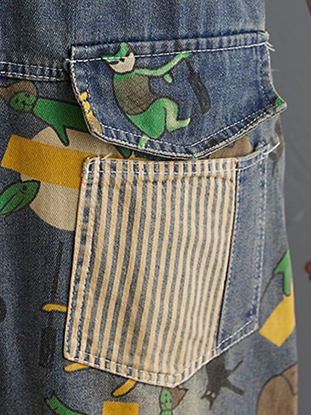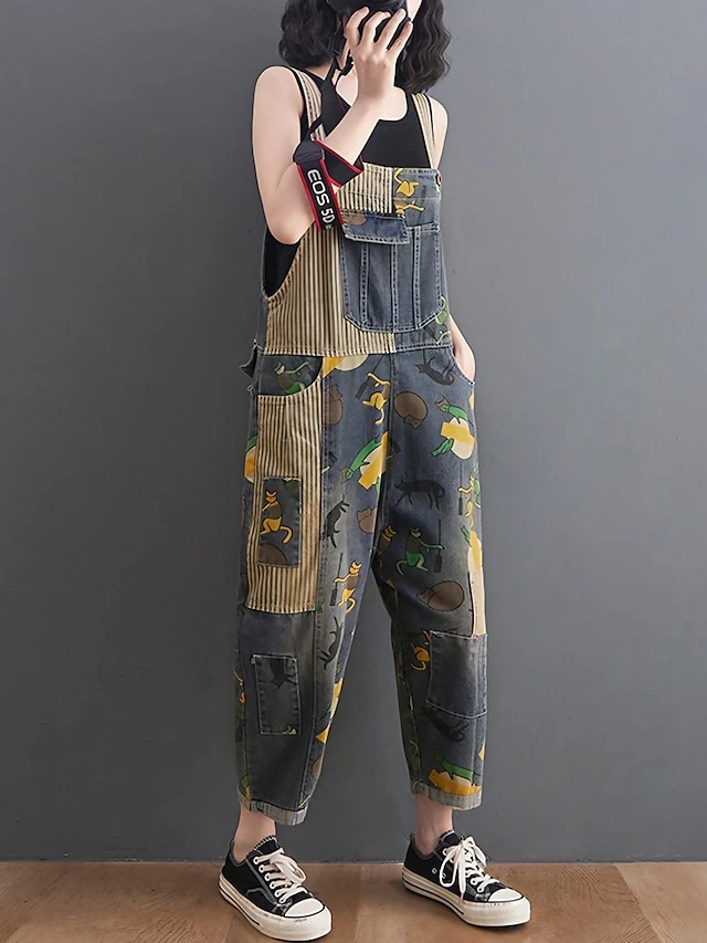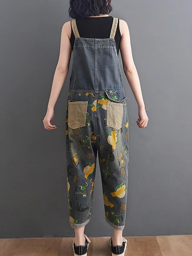 Women‘s Jumpsuit Pocket Print Animal Denim Square Neck Active Street Daily Loose Fit Sleeveless Blue M L XL Fall