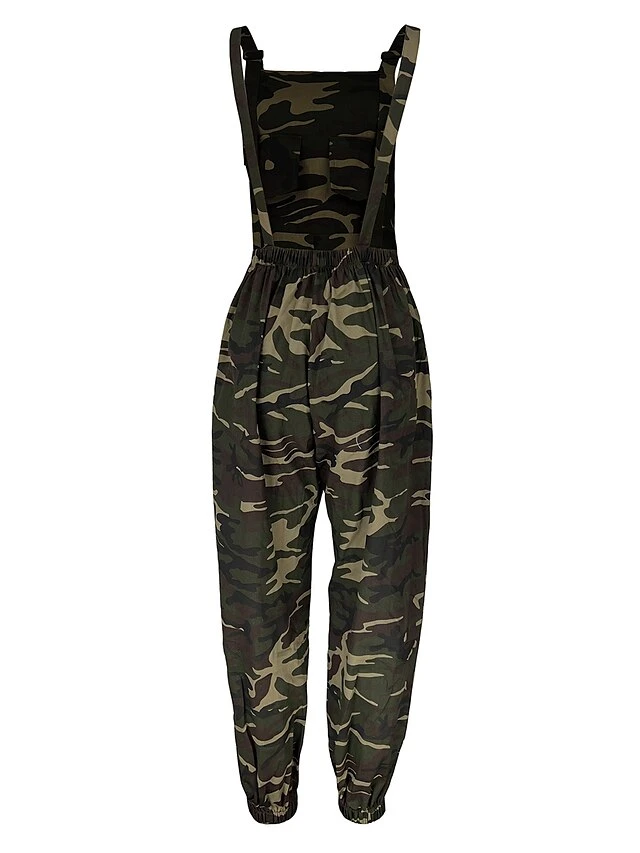 Women’s Jumpsuit Pocket Print Camo / Camouflage Square Neck Streetwear Street Daily Regular Fit Sleeveless Army Green S M L Fall