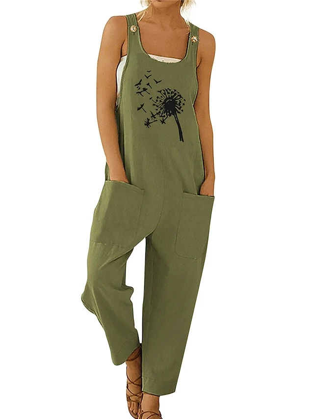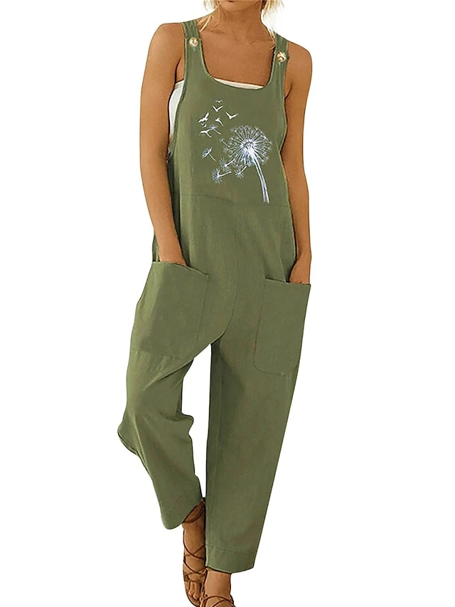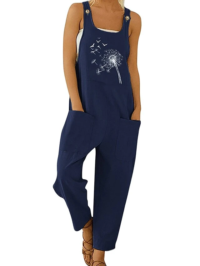 Women’s Jumpsuit Pocket Print Floral U Neck Streetwear Daily Vacation Regular Fit Sleeveless Black Royal Blue Blue S M L Summer