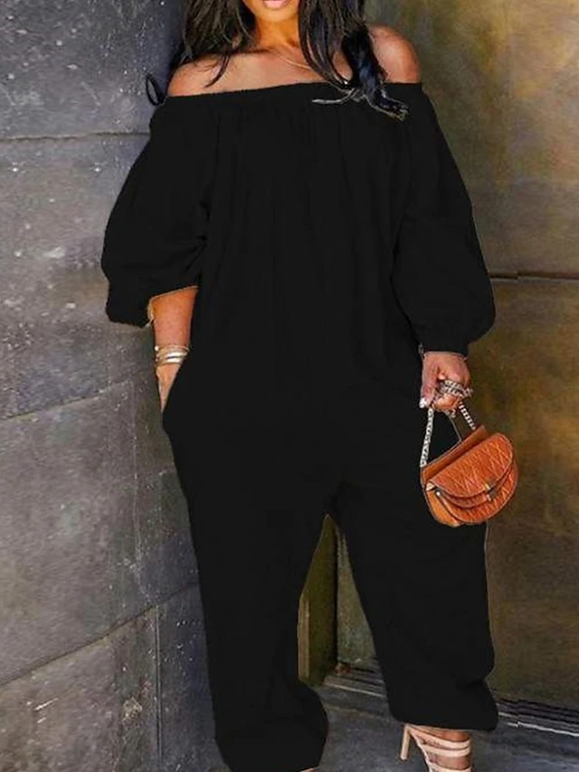 Women’s Jumpsuit Pocket Solid Color Off Shoulder Streetwear Street Going Out Regular Fit Long Sleeve Black White Yellow S M L Summer