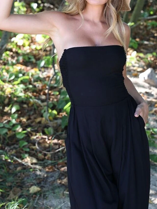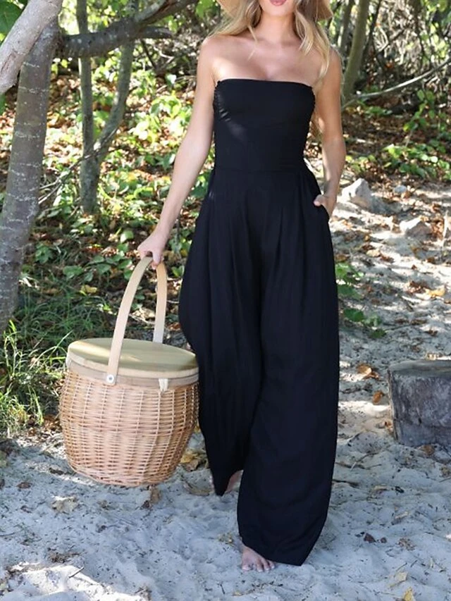 Women’s Jumpsuit Pocket Solid Color Strapless Streetwear Daily Vacation Regular Fit Sleeveless Black S M L Summer
