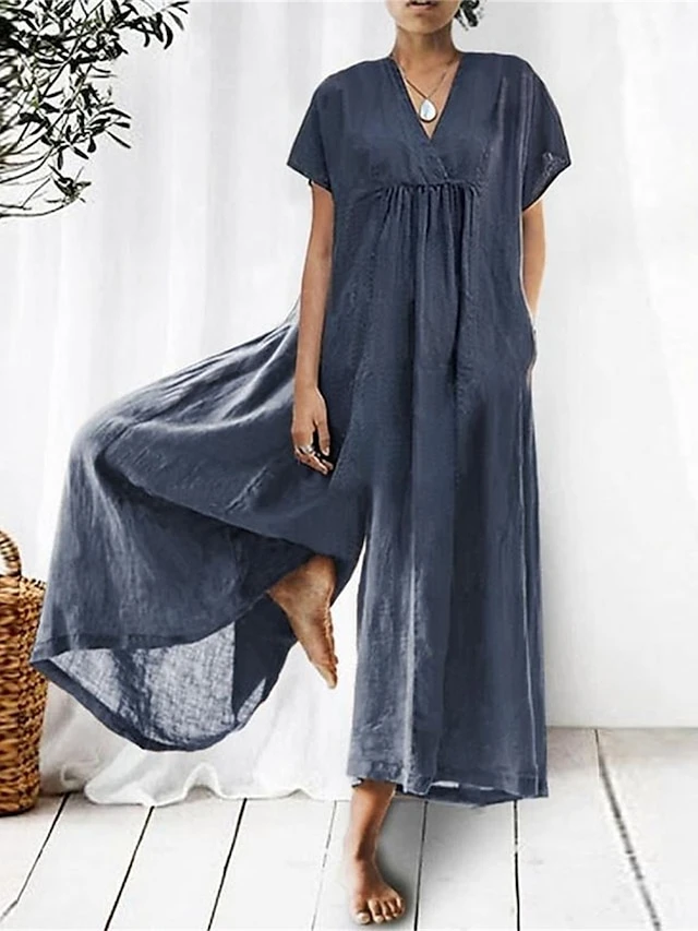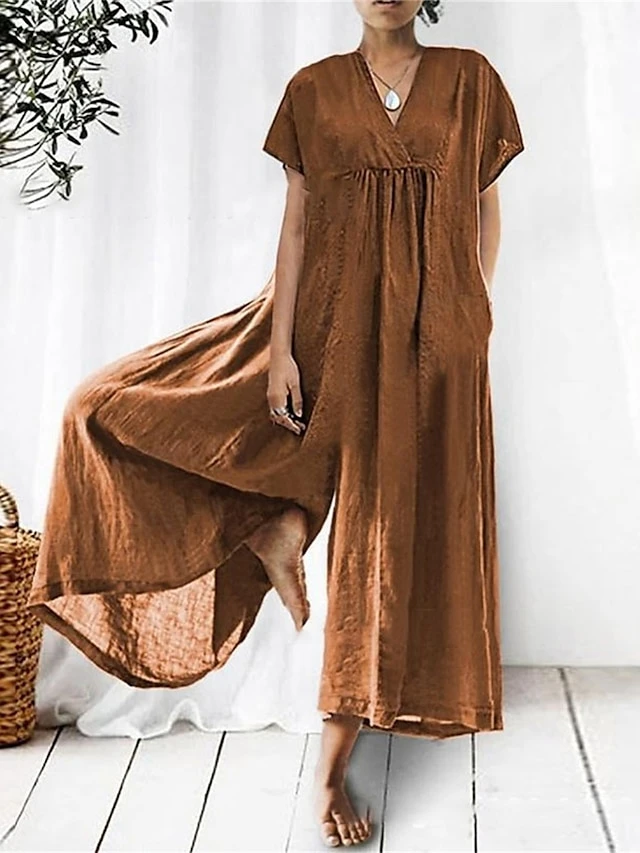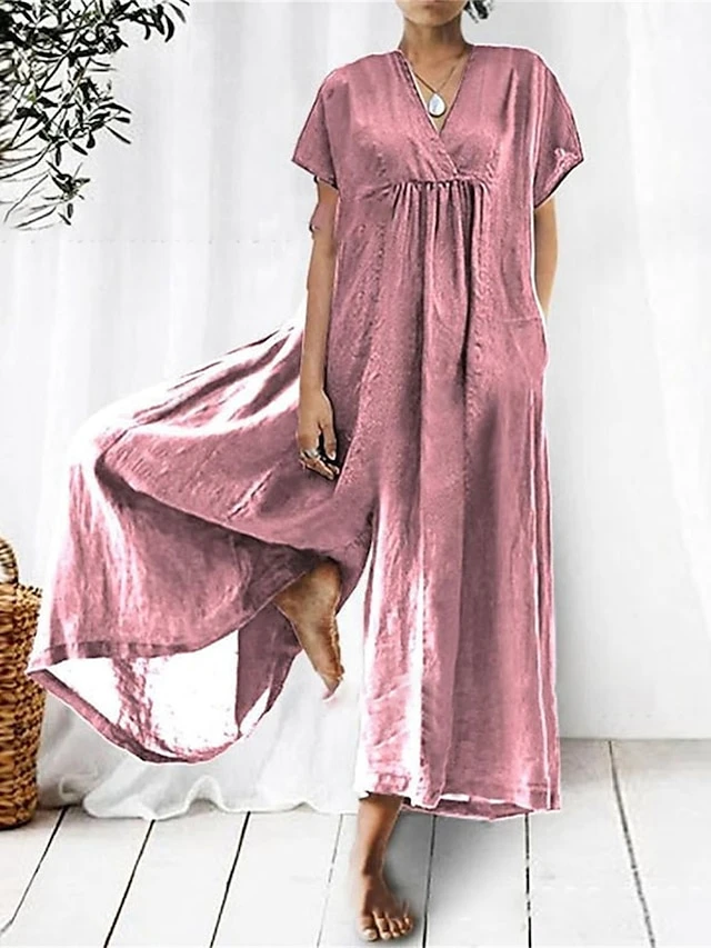 Women’s Jumpsuit Pocket Solid Color V Neck Streetwear Daily Holiday Regular Fit Short Sleeve Black Pink Red S M L Summer