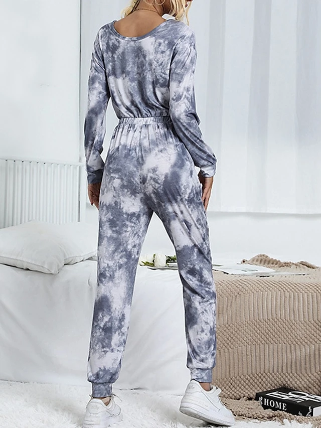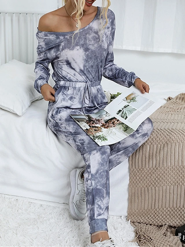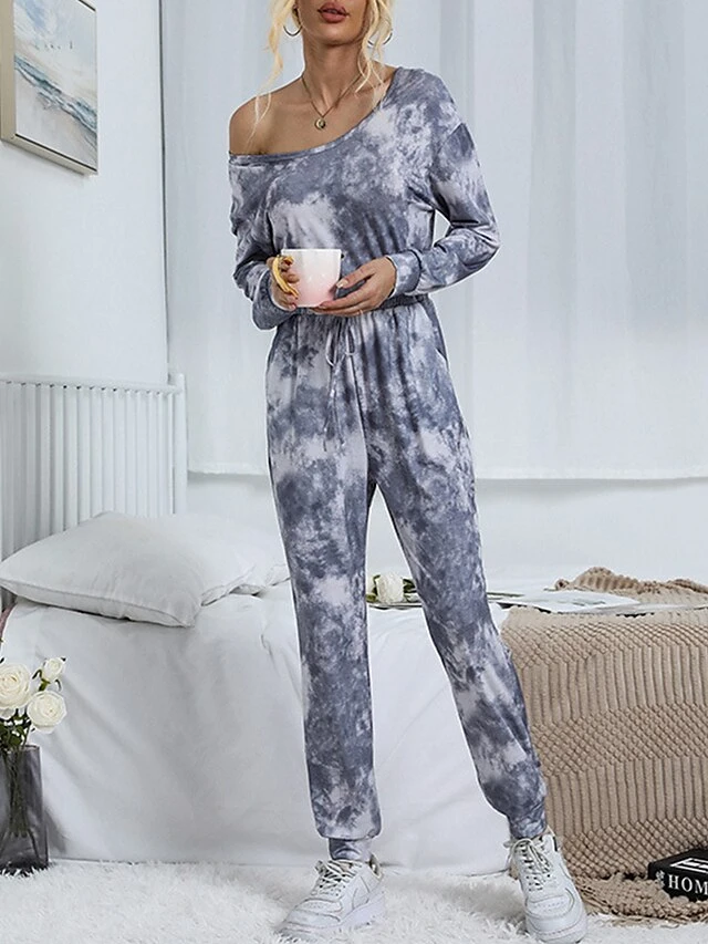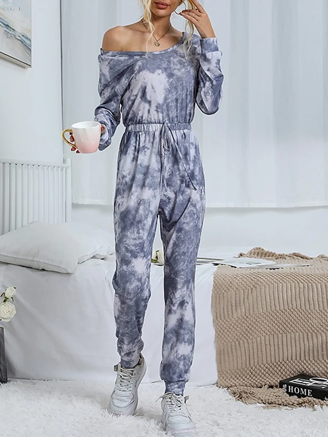 Women’s Jumpsuit Pocket Tie Dye Off Shoulder Streetwear Street Daily Regular Fit Long Sleeve Gray S M L Spring