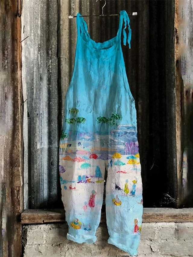 Women’s Jumpsuit Print Floral Crew Neck Streetwear Street Daily Wide Leg Regular Fit Sleeveless Green Blue Purple S M L Spring