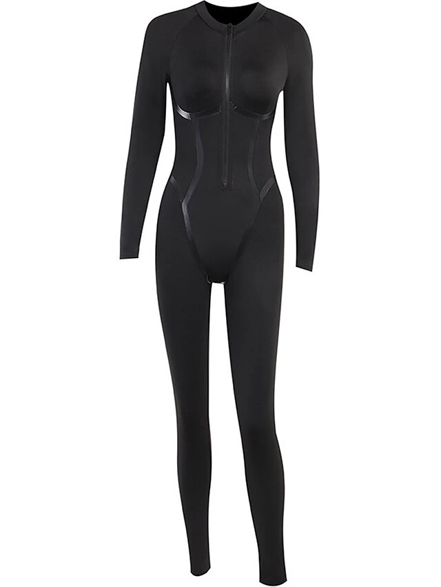 Women’s Jumpsuit Zipper High Waist Solid Color Stand Collar Streetwear Street Sport Regular Fit Long Sleeve Black S M L Fall