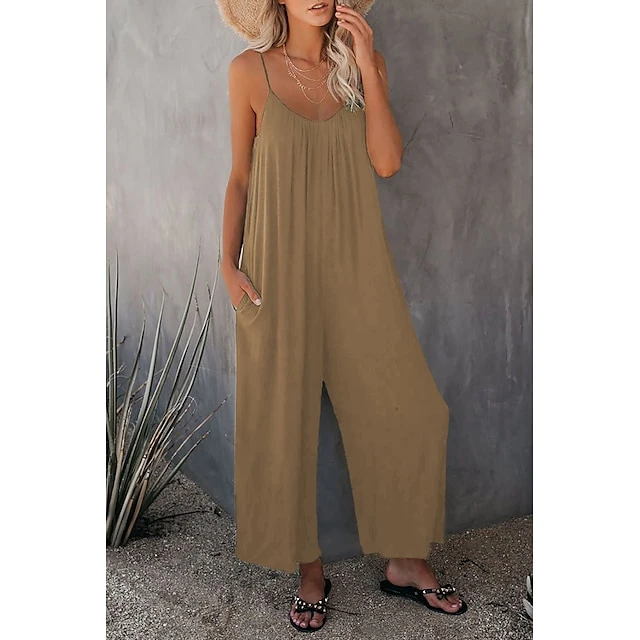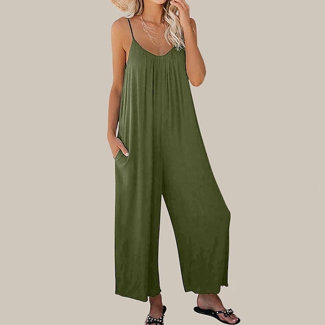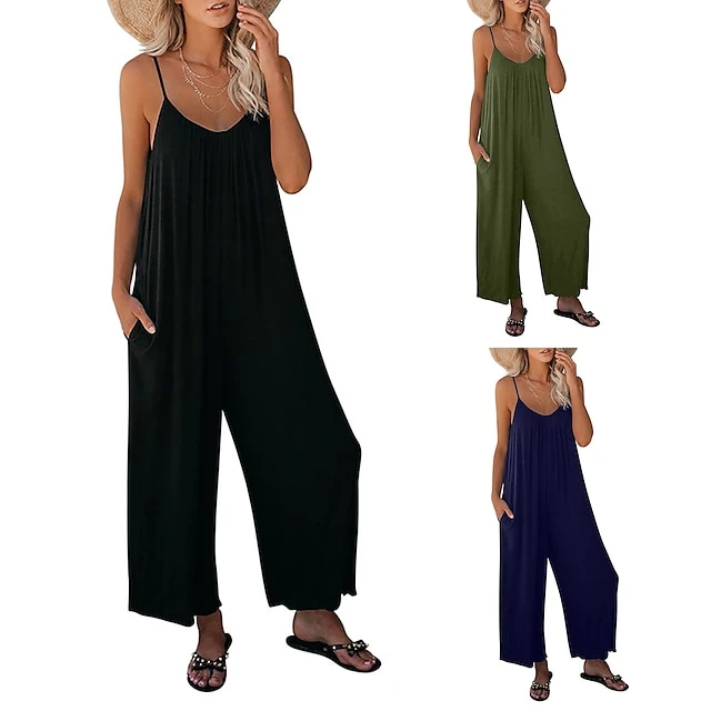 Women’s Jumpsuits Casual Summer Basic Daily Wide Leg Navy Blue Overall Solid Color