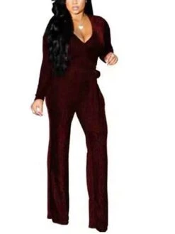 Women’s Jumpsuit Split V Neck Streetwear Regular Fit Long Sleeve Green Red White S M L Spring Summer