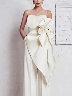 Women’s Jumpsuit Bow Solid Color Elegant Wedding Party Regular Fit Sleeveless White S M L Summer