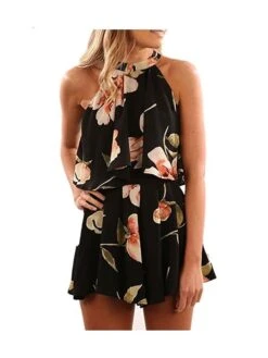 Women’s Romper Floral Boho Vacation Beach Spaghetti Strap Beige White Black S M L Spring