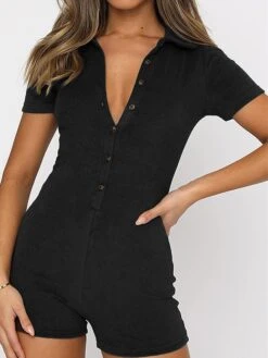 Women’s Romper Button Shirt Collar Streetwear Street Regular Fit White S M L Summer