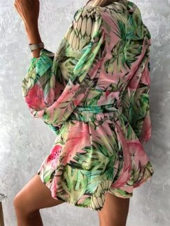 Women’s Romper Print Floral Crew Neck Casual Going Out Weekend Loose Fit Strap Green S M L Spring