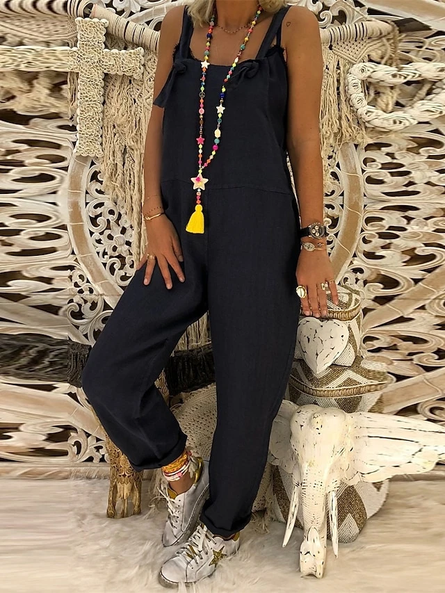 Women’s Overall Bib Utility Pocket Solid Color Square Neck Streetwear Daily Vacation Regular Fit Sleeveless Black Wine Blue S M L Summer Fall Cowboy