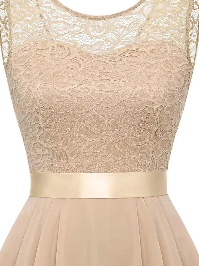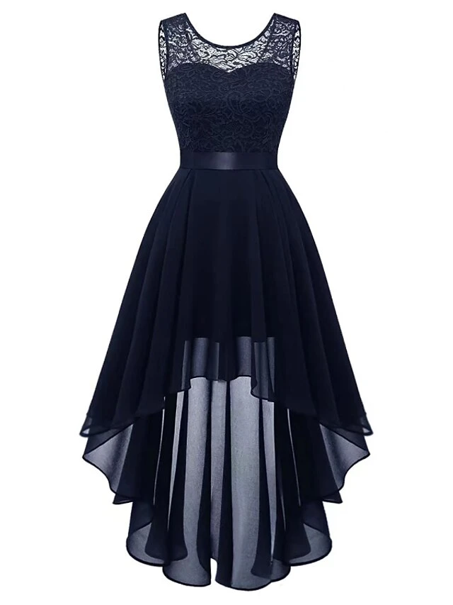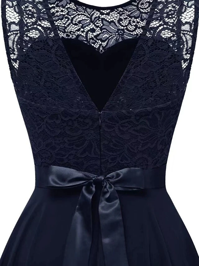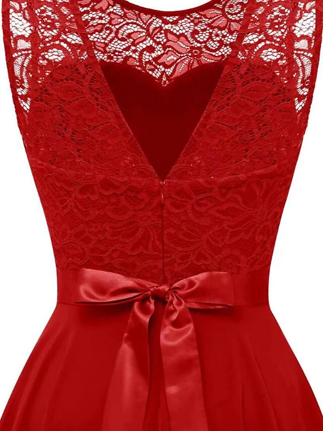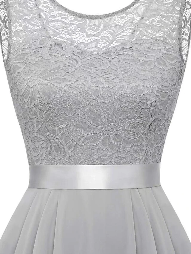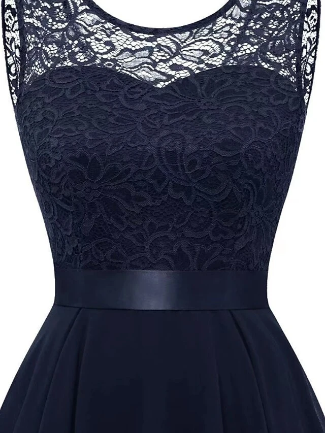 Women‘s Plus Size Curve Black Dress Easter Dress Lace Sleeveless Party Dress Solid Color Crew Neck Spring Fall Prom Dress Maxi Dress Party Club Dress Dress