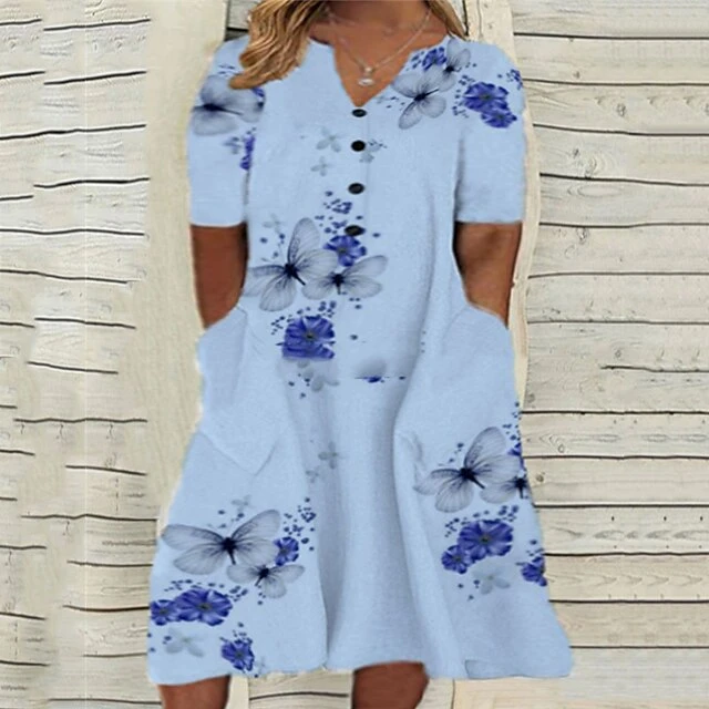Women‘s Plus Size Curve Casual Dress Floral V Neck Print Short Sleeve Fall Spring Casual Knee Length Dress Casual Daily Dress