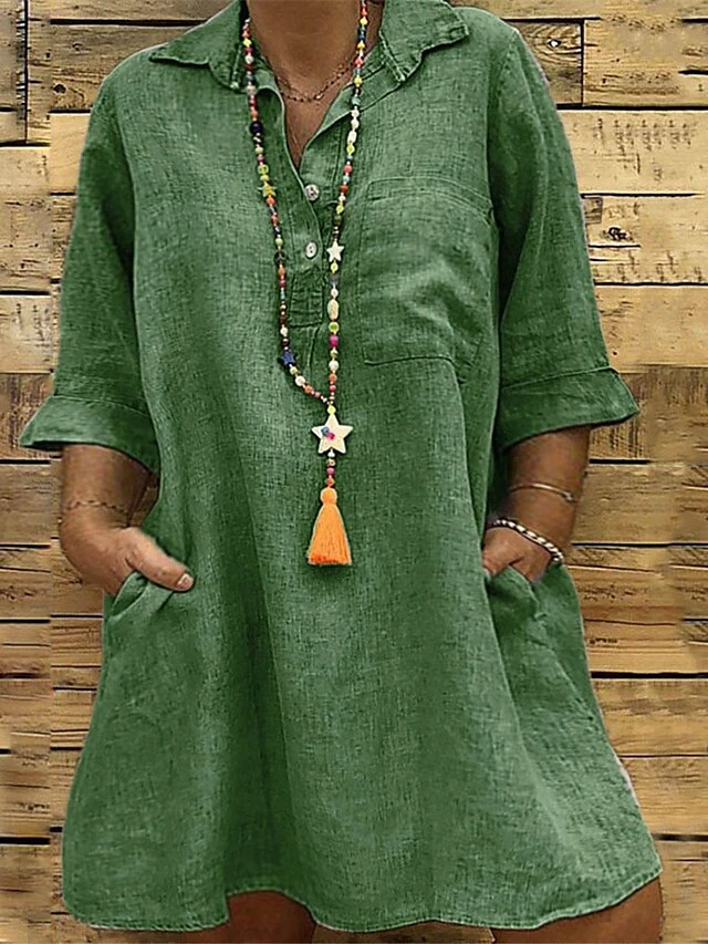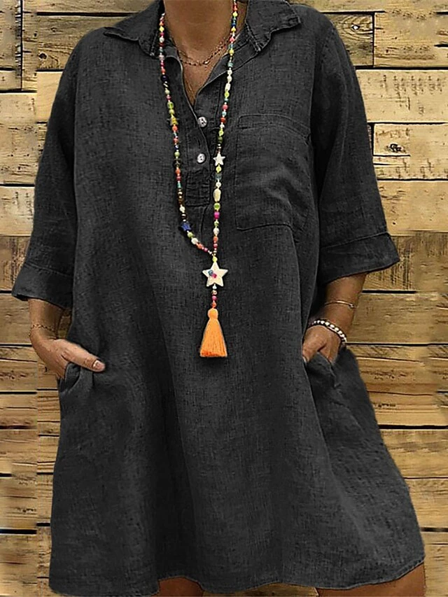 Women‘s Plus Size Curve Casual Dress Solid Color Shirt Collar 3/4 Length Sleeve Fall Spring Casual Classic Mini Dress Daily Vacation Dress