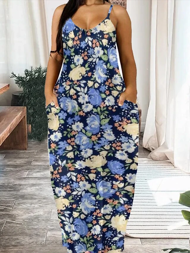 Women‘s Plus Size Curve Casual Dress Strap Dress Leaf Floral Long Dress Maxi Dress Sleeveless Print Strap Romantic Daily White Yellow Summer Spring L XL XXL 3XL 4XL
